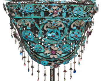 Virginie Ricour Lambard che è solita lavorare con un mix di tecniche ha preso spunto dall’universo fiabesco dell’enorme deposito di perle. Ne sono scaturiti gioielli un po’ psichedelici e un po’ etnici. Alla base l’idea del ricamo su brandelli di seta e cotone riciclati come il bracciale intrecciato con conterie rosso fuoco a contrasto o il collier-serpente.